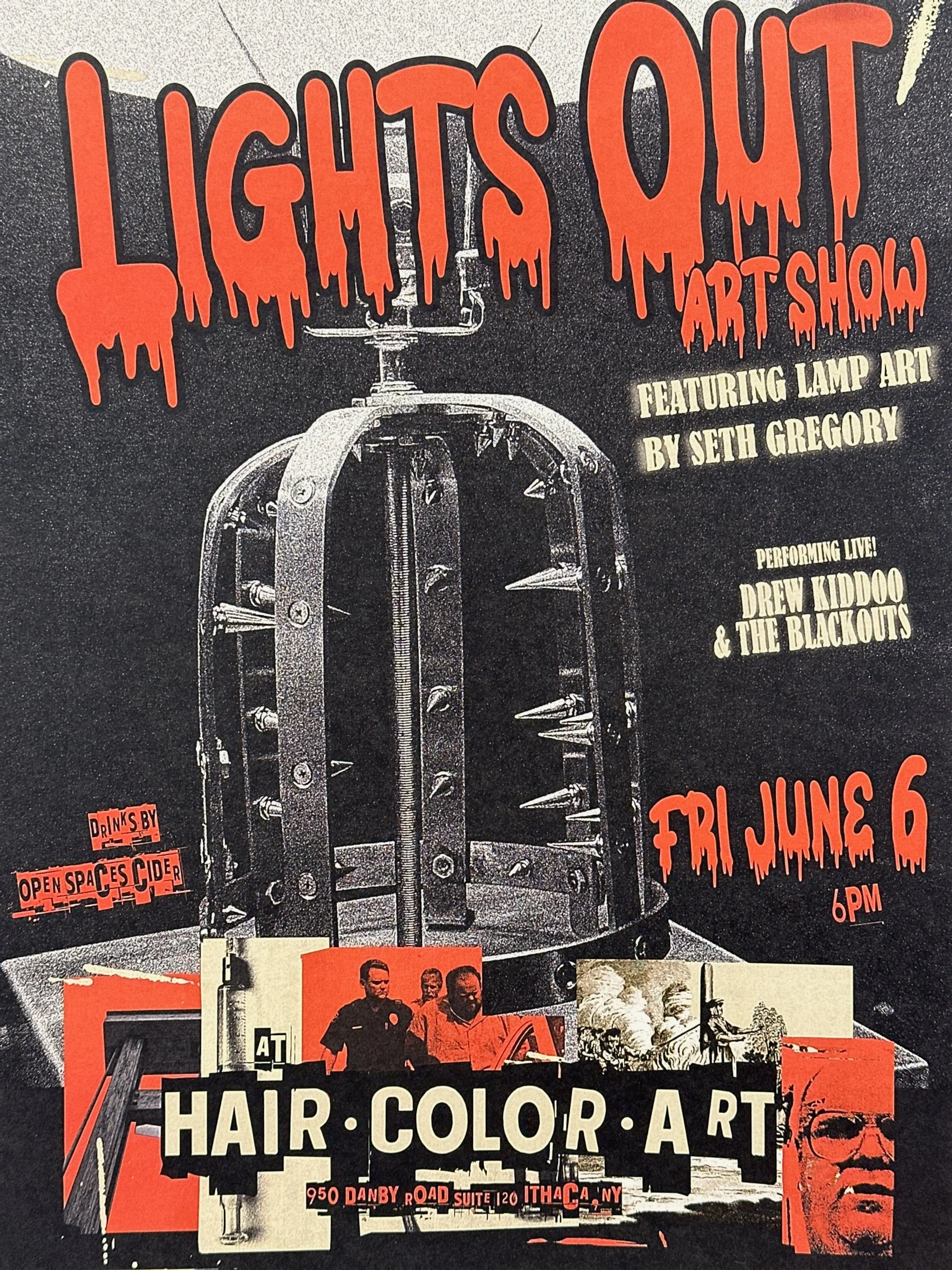 Back to All Events Lights Out Art Show Friday, June 6, 2025 6:00 PM 10:00 PM Hair Color Art 950 Danby Road Ithaca, NY, 14850 United States (map) Google Calendar ICS